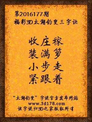 福彩第2016177期3d太湖字谜:收庄稼,装满箩,小步走,紧跟着