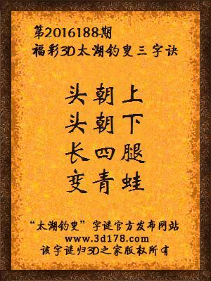 3d第2016188期太湖字谜杰夫哈迪解