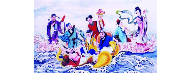 东游仙,——《八仙东游记》中的故事。八仙分为上洞八仙,中洞八仙和下洞八仙。