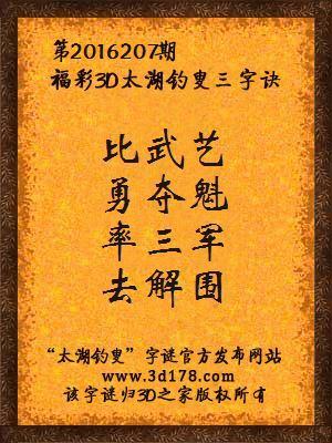 杰夫哈迪解3d第2016207期太湖字谜:比武艺