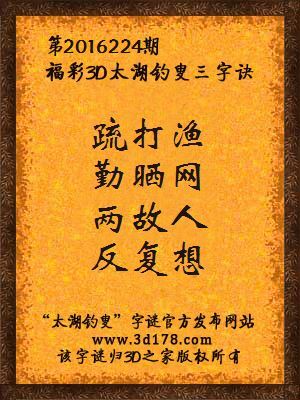 今日3d太湖字谜总汇,3d之家为您详细解答2016224期3d太湖字谜,并汇总多位专家精解太湖字谜供参考。