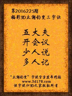 今日3d太湖字谜总汇,3d之家为您详细解答2016225期3d太湖字谜,并汇总多位专家精解太湖字谜供参考。