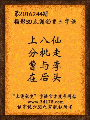 福彩第2016244期3d太湖字谜:上八仙,分批走,曹与李,在后头
