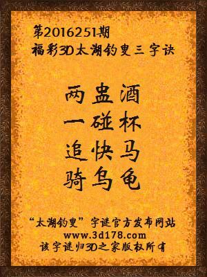 3d太湖字谜第2016251期火车司机解:两盅酒