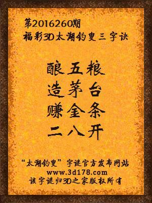 今日3d太湖字谜总汇,3d之家为您详细解答2016260期3d太湖字谜,并汇总多位专家精解太湖字谜供参考。