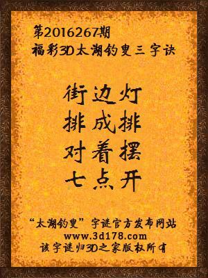 解3d第2016267期太湖字谜:
