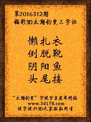 3d第2016312期马后炮解太湖字谜之懒扎衣