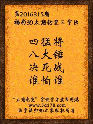 3d第2016315期湘西老怪解太湖字谜