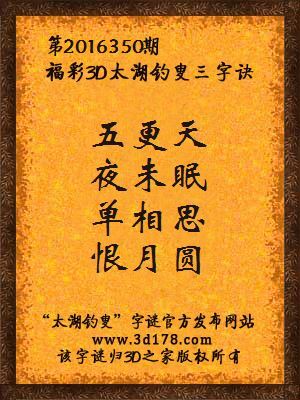 3d太湖字谜第2016350期湘西老怪独家思路分析