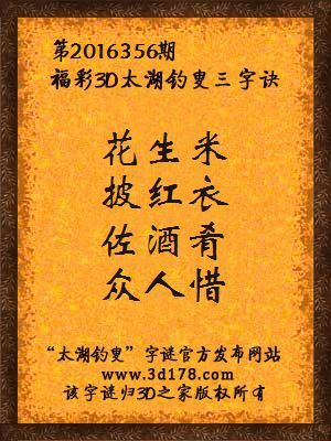 解3d第2016356期太湖字谜: