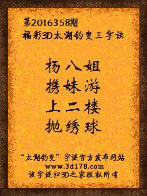 解3d第2016358期太湖字谜: