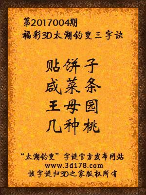 3d第2017004期马后炮解太湖字谜之贴饼子