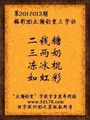 解3d第2017012期太湖字谜: