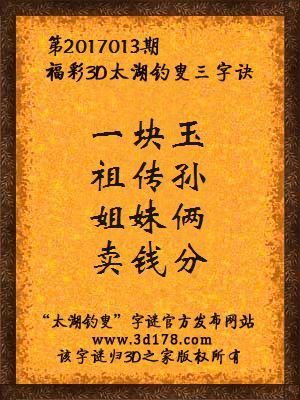 第2017013期专家只求奉献解3d字谜:祖传宝玉