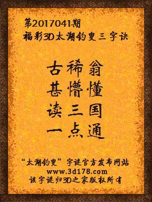 3d第2017041期马后炮解太湖字谜之古稀翁