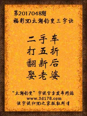 3d专家湘西老怪解第2017048期太湖字谜三字诀