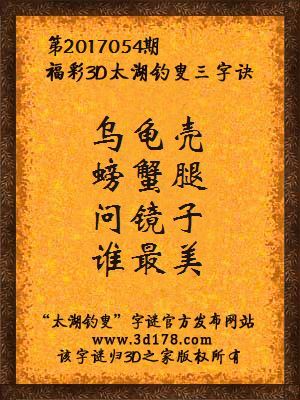 3d第2017054期马后炮解太湖字谜之乌龟壳