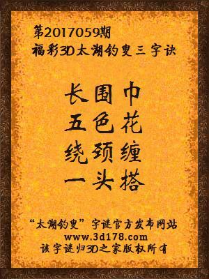 3d第2017059期马后炮解太湖字谜之长围巾