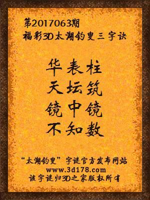 福彩第2017063期3d太湖字谜:华表柱,天坛筑,镜中镜,不知数