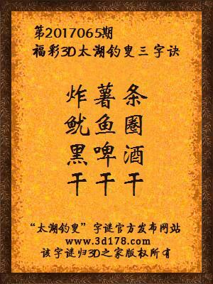 第2017065期福彩3d太湖钓叟三字诀