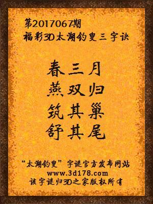 福彩第2017067期3d太湖字谜:老情人,旧照片,三生约,已化烟