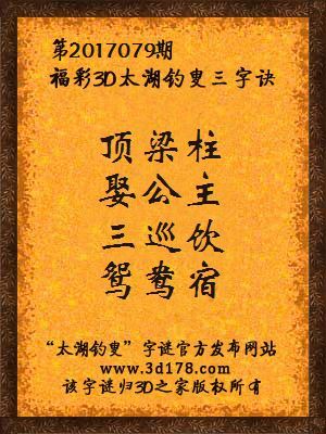 3d第2017079期马后炮解太湖字谜之顶梁柱马后炮第079期预测: