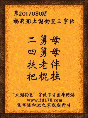 福彩第2017080期3d太湖字谜:二舅母,四舅母,扶老伴,把棍拄