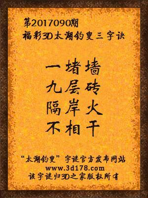 福彩第2017090期3d太湖字谜:一堵墙,九层砖,隔岸火,不相干