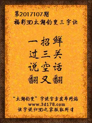 3d第2017107期马后炮解太湖字谜之一招鲜