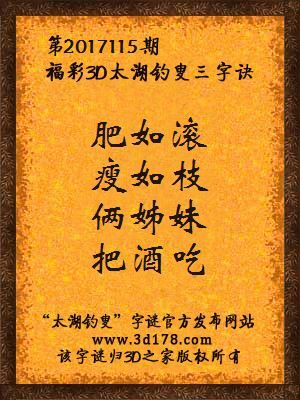 3d第2017115期马后炮解太湖字谜之肥如滚