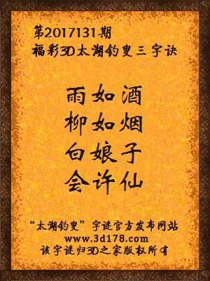 福彩第2017131期3d太湖字谜: