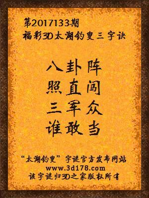 福彩第2017133期3d太湖字谜: