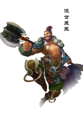 在《说唐》和《隋唐演义》中,混世魔王即为大名鼎鼎的程咬金。在以《说唐》为代表的系列话本及历史演义小说中,程咬金,字知节,小名一郎,使一柄八卦宣花斧,是一名性格直爽、粗中有细的福将,而且特别长寿,活了一百多岁,直至武则天政权垮台。程咬金梦中有一位老人教会了他全套精妙斧法,醒来演练,却被俊达喝破,只记得三招半,这就是所谓"程咬金三斧"。