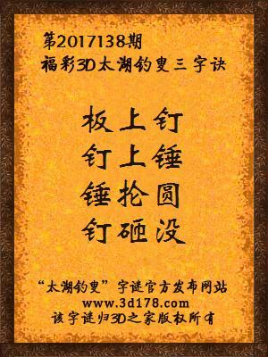 3d第2017138期马后炮解太湖字谜之板上钉