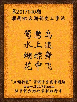 解3d第2017140期太湖字谜: