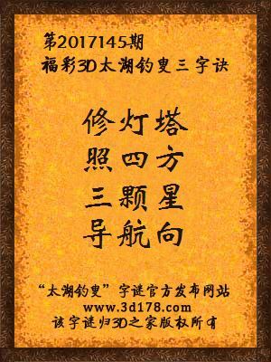 解3d第2017145期太湖字谜: