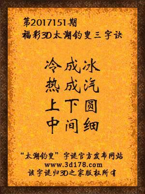 3d第2017151期马后炮解太湖字谜之冷成冰