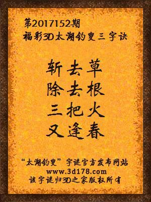专家湘西老怪解第2017152期3d太湖钓叟三字诀