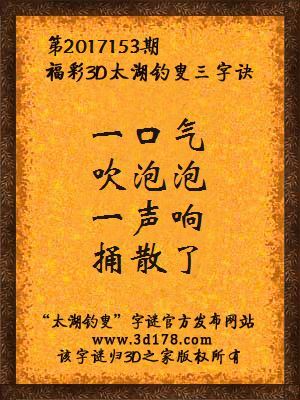 福彩第2017153期3d太湖字谜:一口气,吹泡泡,一声响,捅散了
