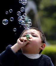 本期的字谜讲的是小朋友喜欢玩的吹泡泡。泡泡用嘴巴一吹就形成了,不过轻轻一碰很快就消失了,转瞬即逝,持续的时间比较短,本期建议关注关注小跨度。