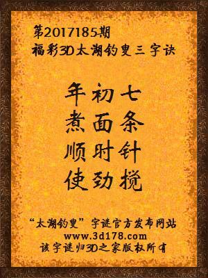 福彩第2017185期3d太湖字谜:年初七,煮面条,顺时针,使劲搅