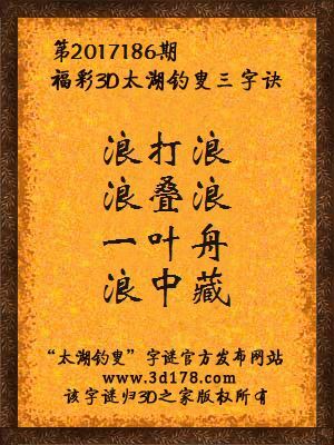 福彩第2017186期3d太湖字谜:浪打浪,浪叠浪,一叶舟,浪中藏