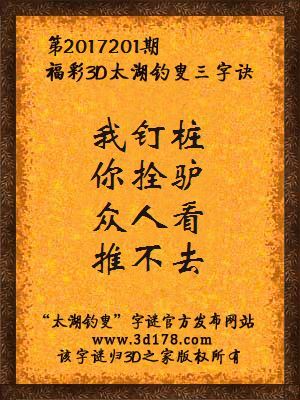 福彩第2017201期3d太湖字谜:我钉桩,你拴驴,众人看,推不去