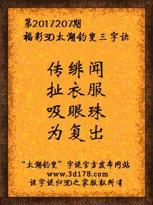 福彩第2017207期3d太湖字谜:传绯闻,扯衣服,吸眼珠,为复出