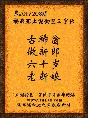 3d第2017208期杰夫哈迪太湖字谜解析