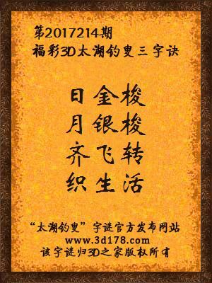 福彩第2017214期3d太湖字谜:日金梭,月银梭,齐飞转,织生活
