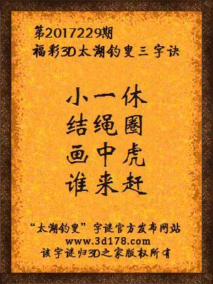 3d字谜第2017229期丽人达人独家解析太湖字谜