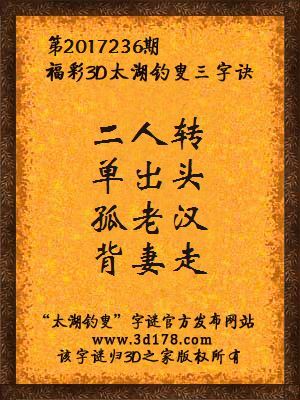 下面开始解3d第2017236期太湖字谜: