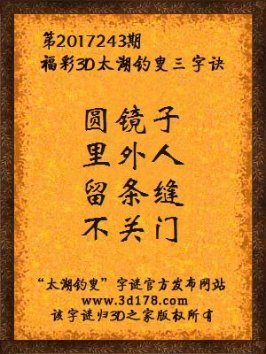 3d第2017243期马后炮解太湖字谜之圆镜子