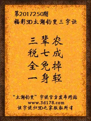 第2017250期福彩3d太湖钓叟三字诀